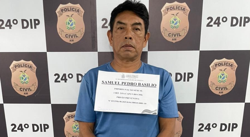 Manaus (AM)- A Polícia Civil do Amazonas prendeu, nesta terça-feira (14), o guia turístico Samuel Pedro Basílio, de 52 anos. A prisão preventiva foi cumprida pelo 24º Distrito Integrado de Polícia (DIP), sob a coordenação do delegado Marcelo Martins, por crime de importunação sexual.