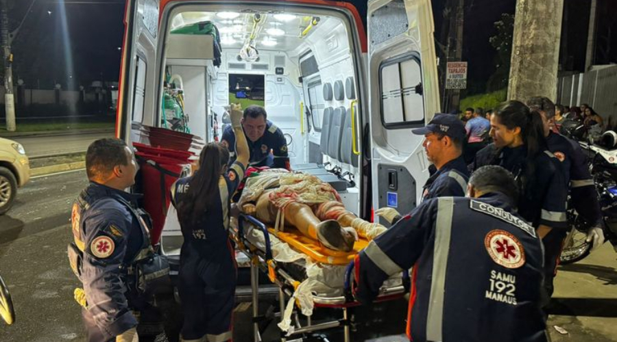 Manaus (AM)- Na noite dessa quarta-feira (15), uma mulher teve a perna esmagada após um grave acidente entre uma motocicleta e um ônibus, na avenida Torquato Tapajós.