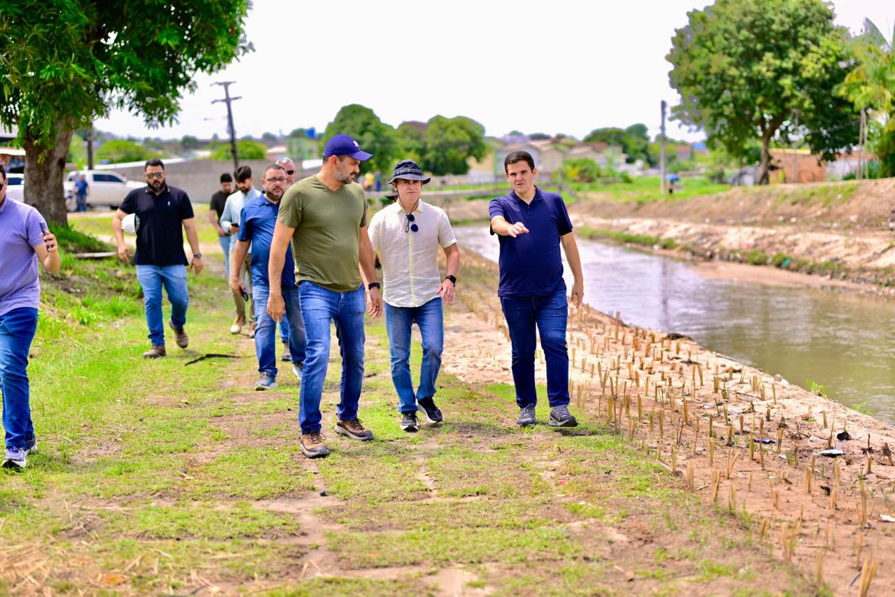 Durante a visita técnica, o vice-prefeito Renato Junior apresentou detalhes sobre as soluções ecológicas e sustentáveis empregadas na obra, como o uso do capim-vetiver, planta de raízes profundas que estabiliza o solo e evita a erosão. O método consiste na implantação de cordões transversais às encostas, que funcionam como barreiras vivas, acompanhando as curvas de nível do igarapé e controlando o transbordamento.